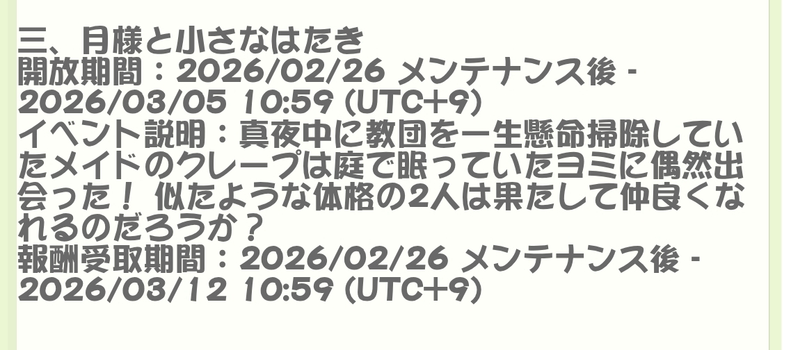 | … | 6326/02/24(火)22:42:27 ID:29qiZascNo.1405282886+イベント告知あったにゃん!? |