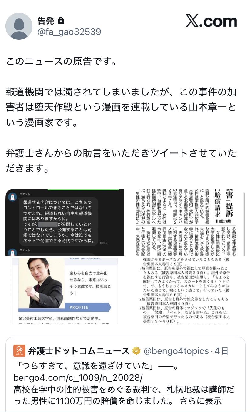 もし万が一仮にマジだとしても別件で名誉毀損で訴え返される行為じゃねぇのこういうの