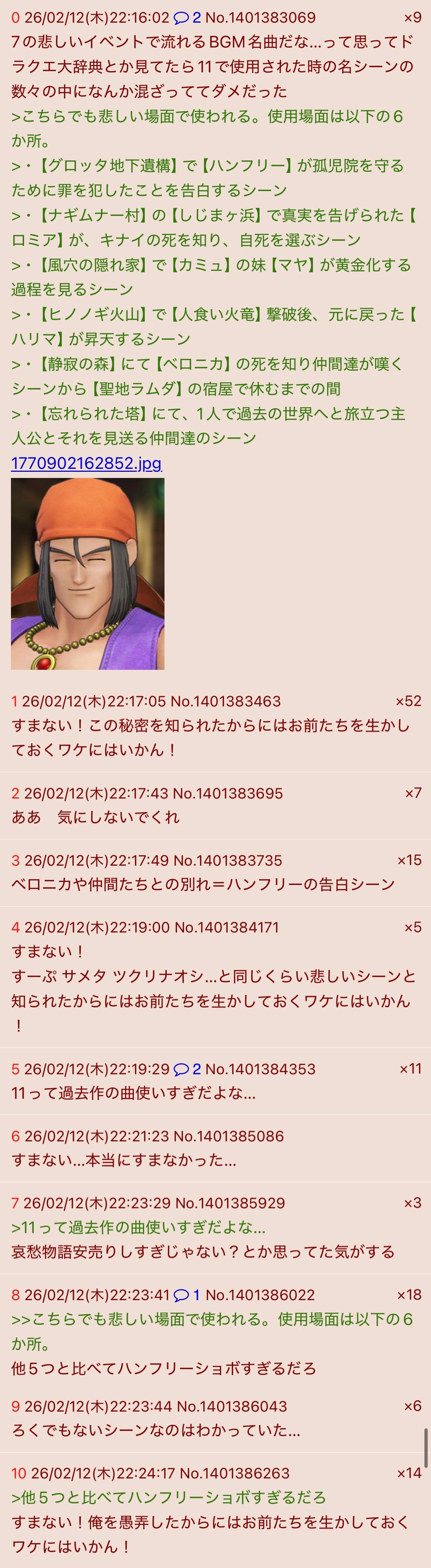 | … | 2826/02/25(水)02:06:43No.1405340384そうだねx5主人公がハンフリーの格好してるドラクエあるよな |