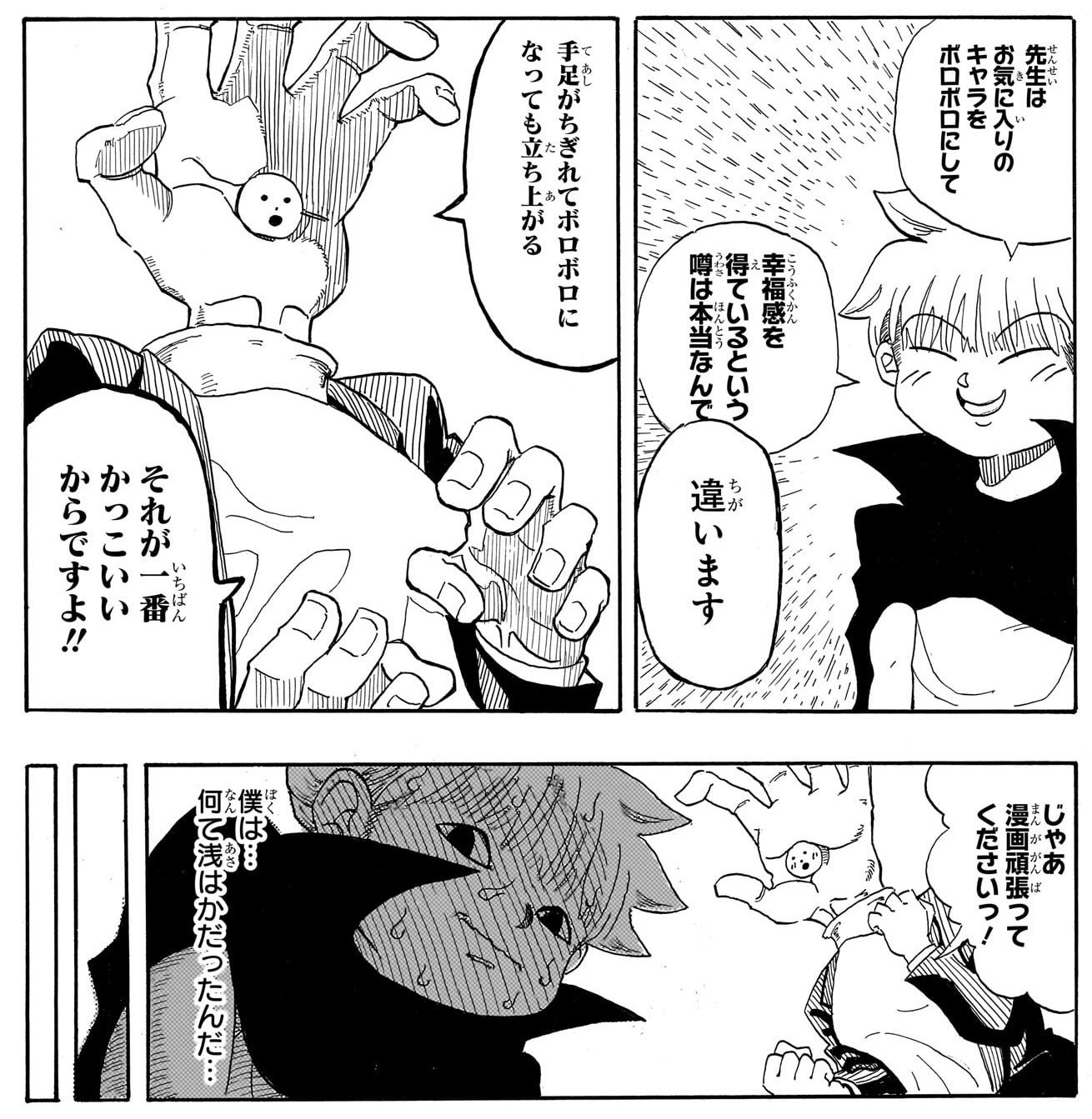 | … | 1826/02/25(水)11:00:26No.1405381160+多分ゴンがボマーで手吹っ飛ばされても(足は負傷だっけ?)立ち上がっていく姿で性癖生まれたんだろうな… |