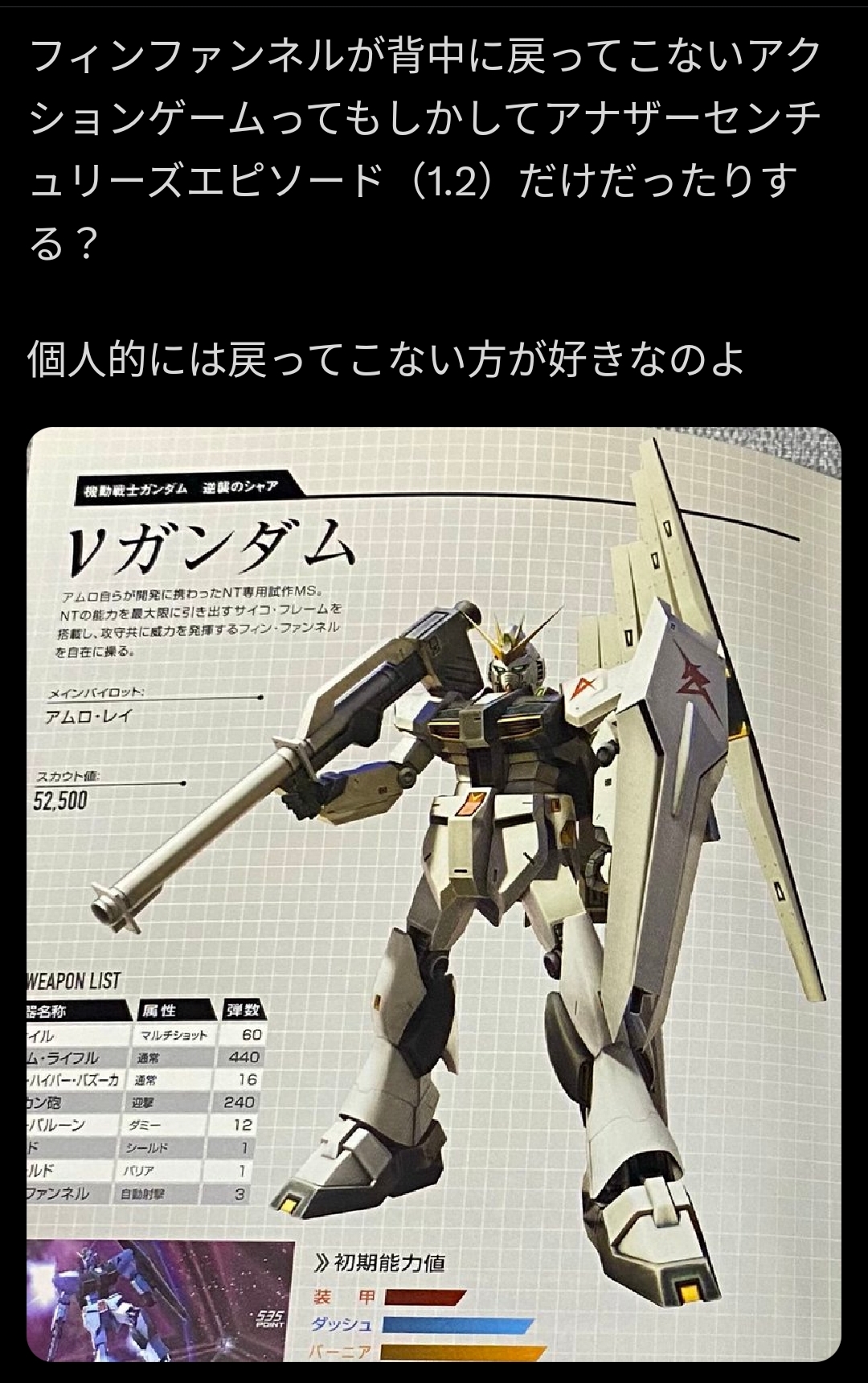 | … | 1126/02/25(水)01:45:38No.1405338128そうだねx5ファンネルの充電してるのはHi-νだからな |