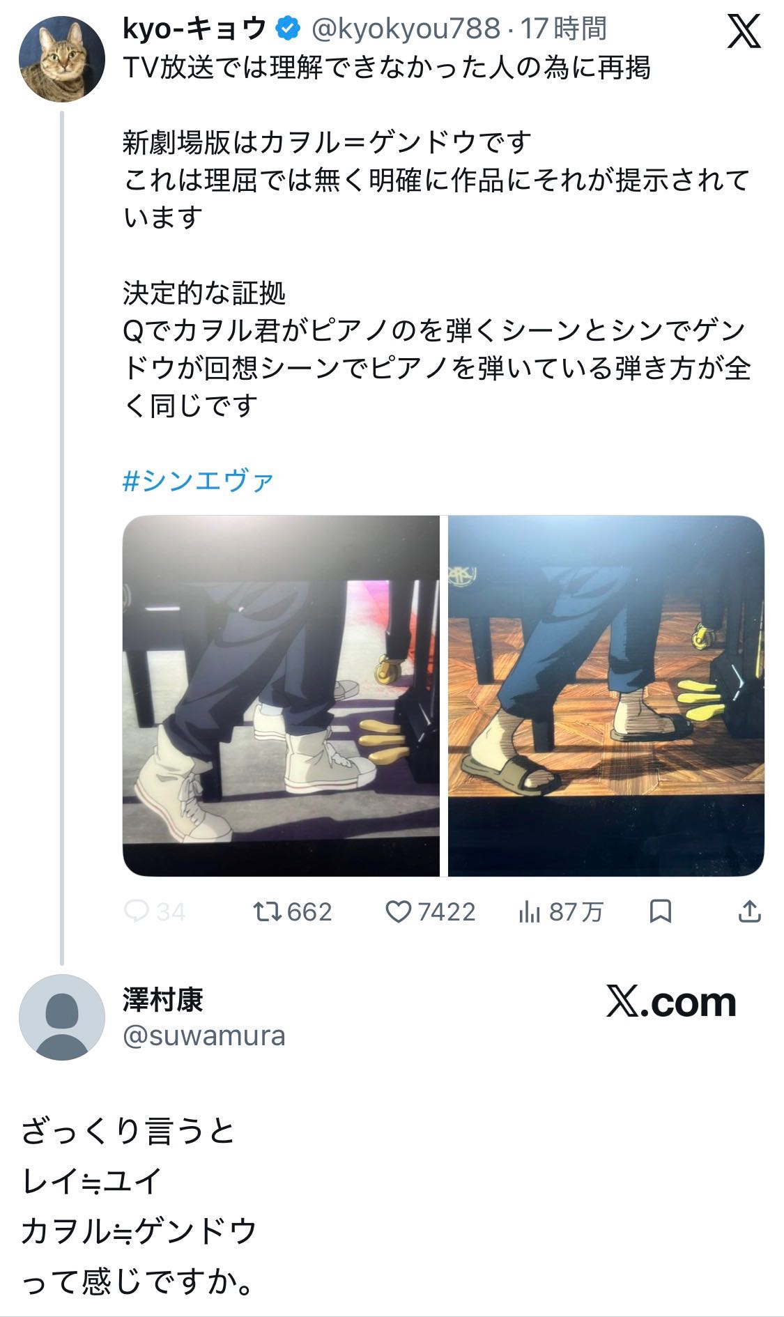| … | 2726/02/25(水)13:12:15No.1405412002そうだねx2カヲルとゲンドウで同じことしてるのは分かるけど何の意味が?としか |