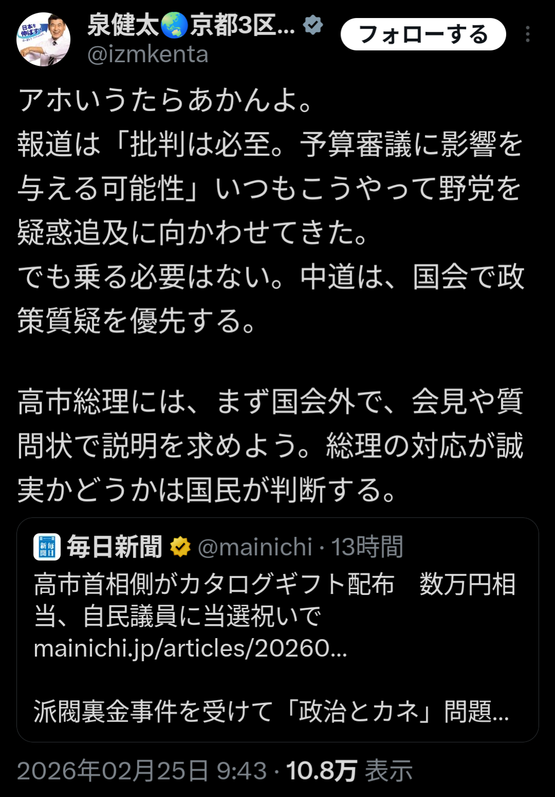 | … | 926/02/25(水)12:15:52No.1405395958+こいつ口ばっかりで中道に残る時点で同類じゃん |