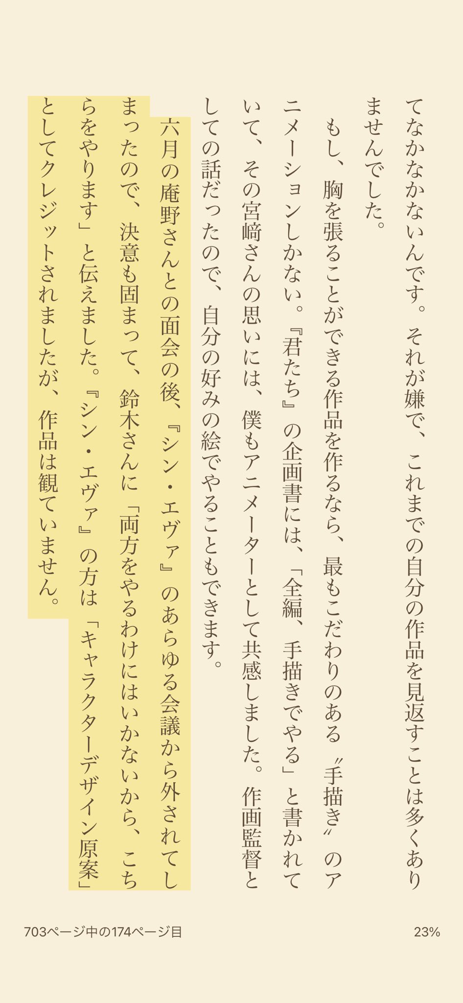 | … | 8226/02/25(水)19:03:57No.1405491179そうだねx1>新劇場版のエヴァ走るシーンとか手書き作画をCGに変えられたとか庵野に相談したらあっそうって感じで引き留めもされなかった |