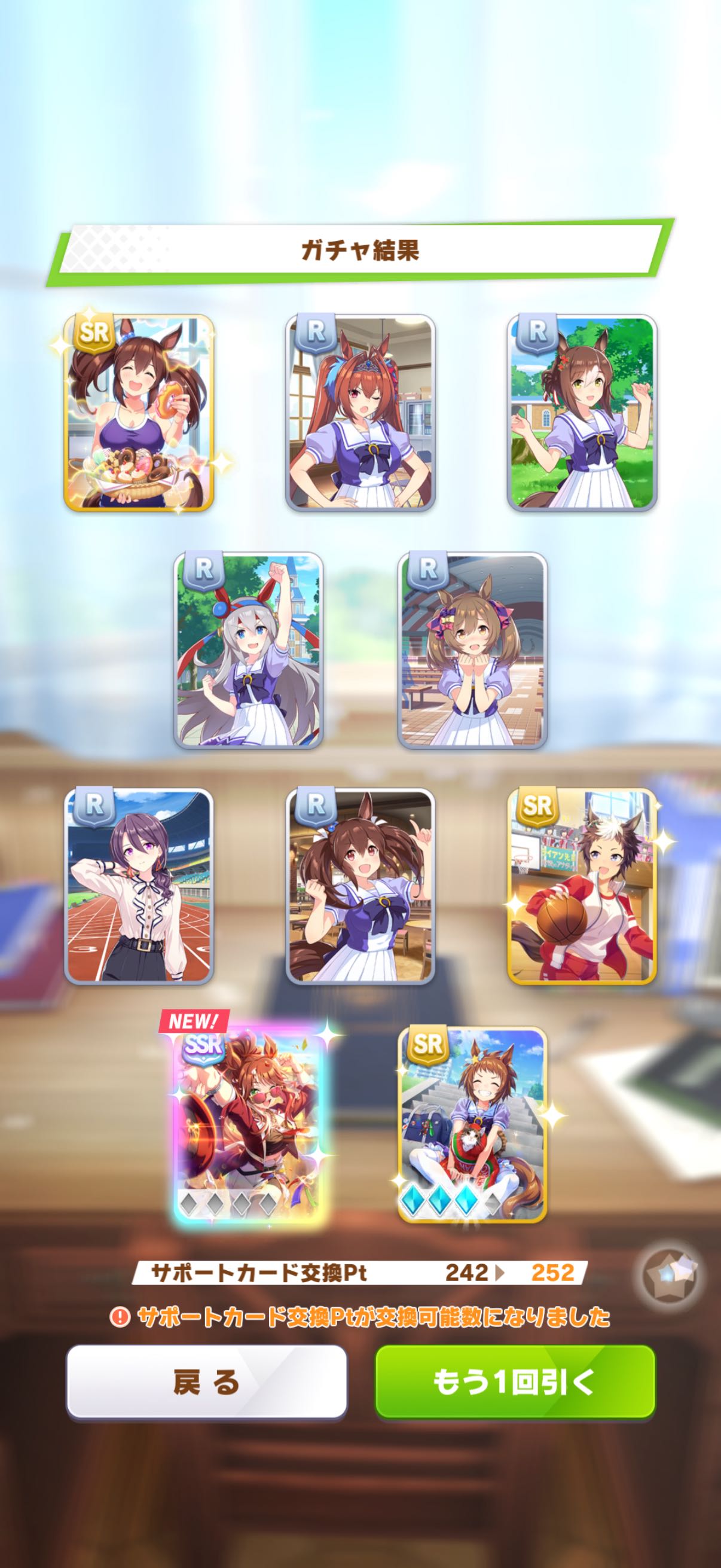 | … | 32526/02/25(水)20:38:17 ID:VQIktUQ6No.1405526901+>>DP割り振りは初手メンタル3のてんぷらです >夢トレどんな感じで叩いてます? >私スピが足りなくなるのでシニア入るまではスピで叩き続けてるんですが どの練習もしょぼいなって時に緊急回避的に叩くのが主です スピ2なら夢トレじゃない友情も割と強めなので抵抗なく叩けると思います |