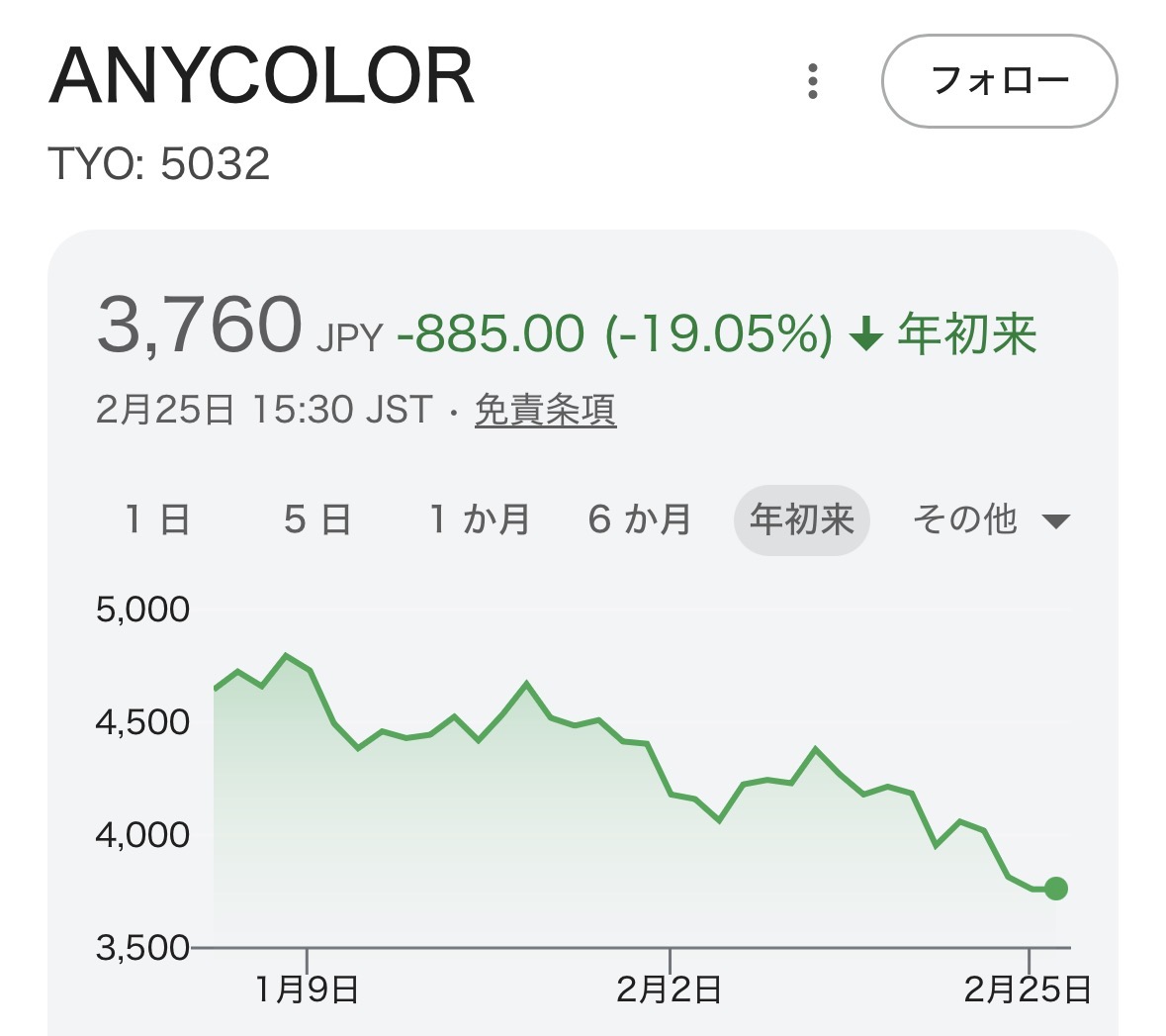 | … | 1626/02/25(水)20:35:22No.1405525839そうだねx1>チャートだけ見ると鈴原の復帰を契機に株価落ち始めたように見えるな |