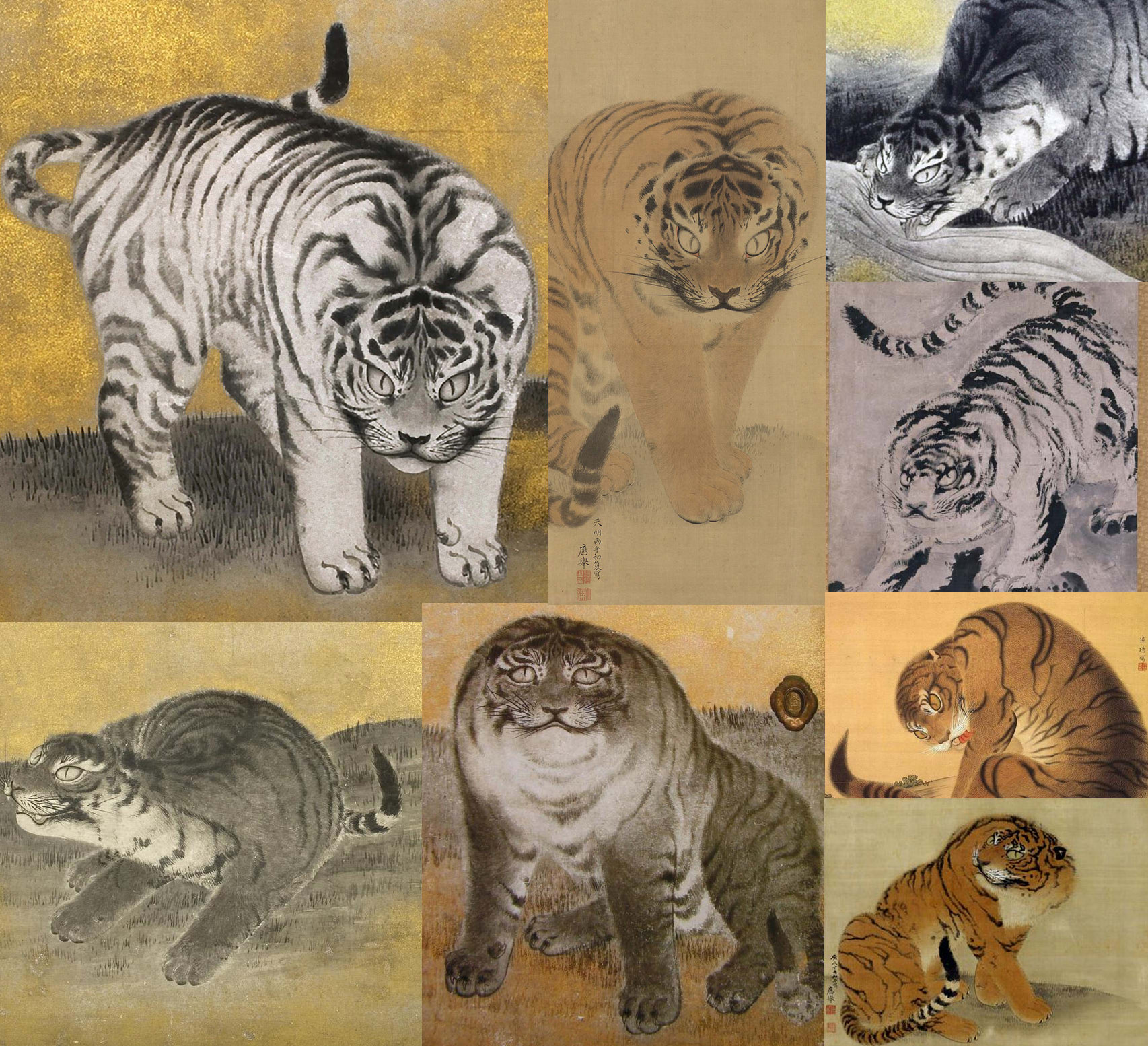 | … | 7526/02/25(水)20:56:34No.1405533790+>昔の日本は伝聞と毛皮で虎を知ってたから毛皮の模様は滅茶苦茶精密なのに形は知らんから滅茶苦茶適当な絵が多いという |