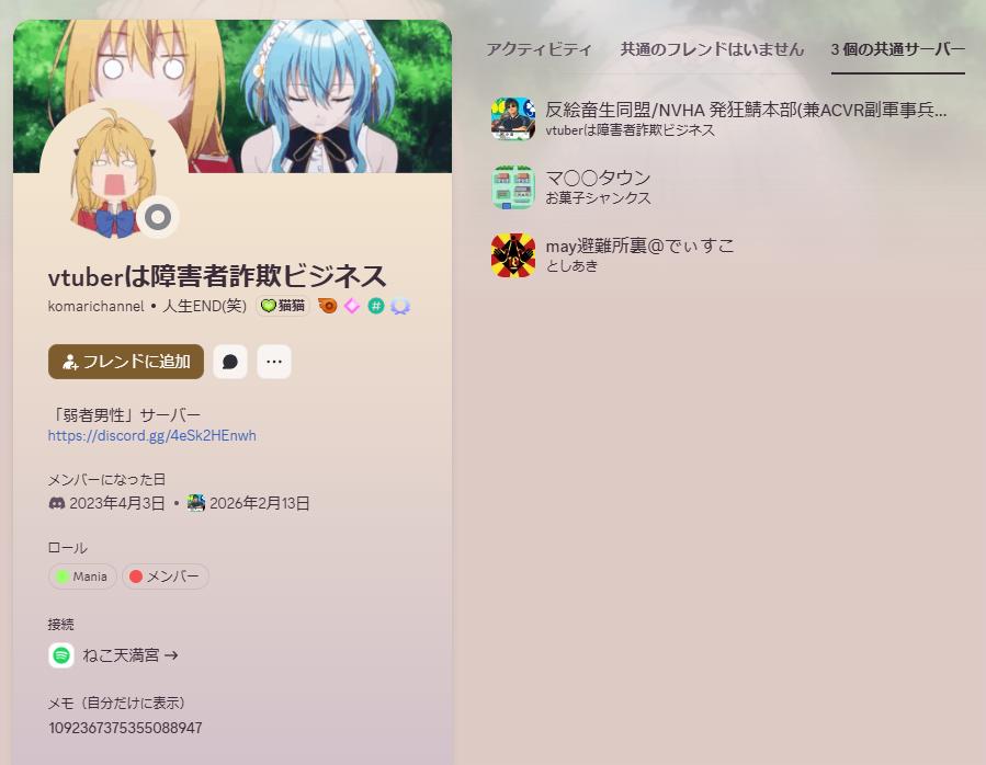 | … | 8626/02/25(水)21:42:49No.1405551459そうだねx7>シャンカー、まとめサイトのネタだけでアニメゲーム漫画冷笑してる糞弱男だらけなんだよな。 |