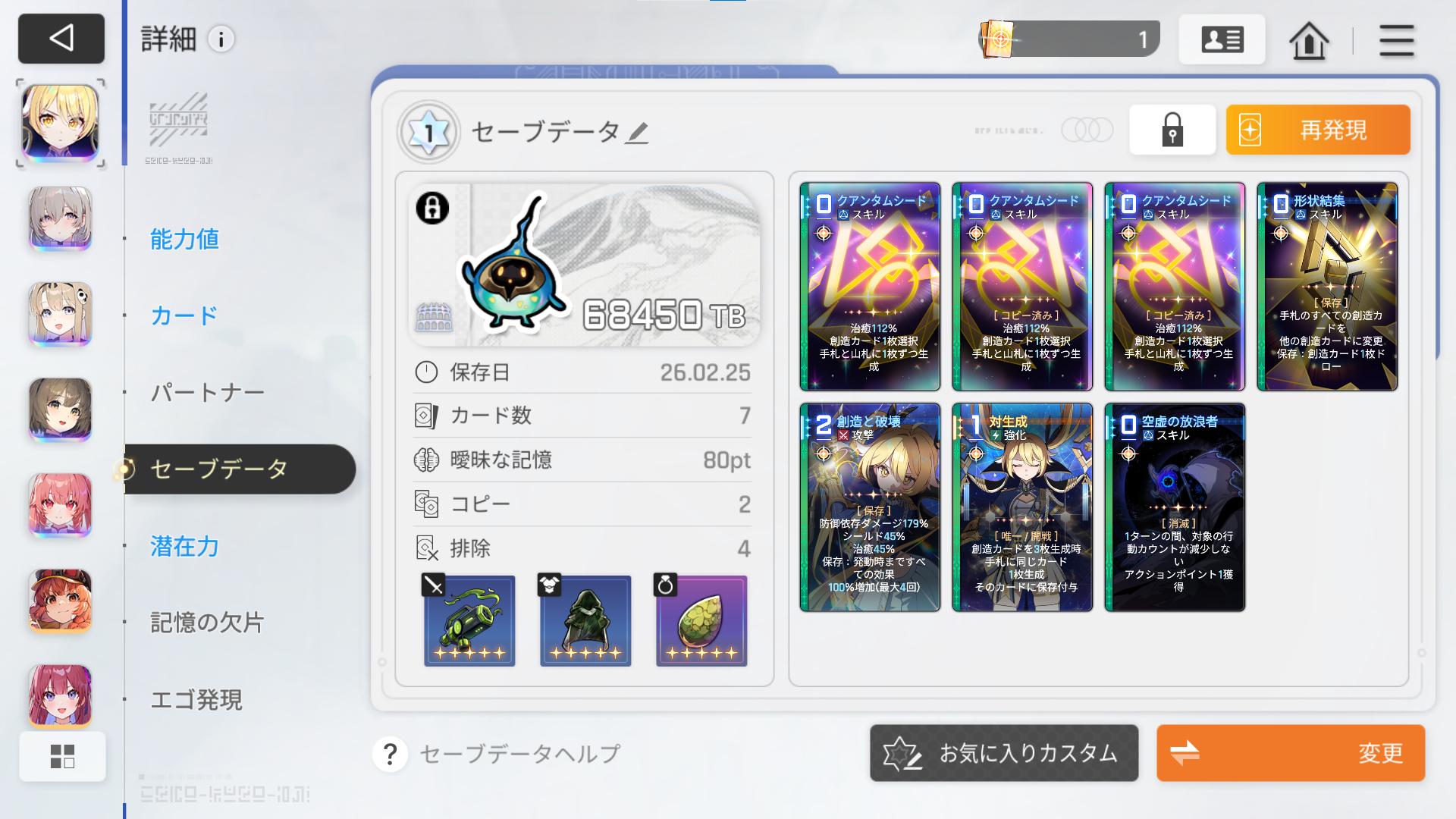 | … | 1026/02/25(水)23:11:30No.1405587531+APやバフは盛れるけど他の戦闘員のカードが引けないとだめでございます |
