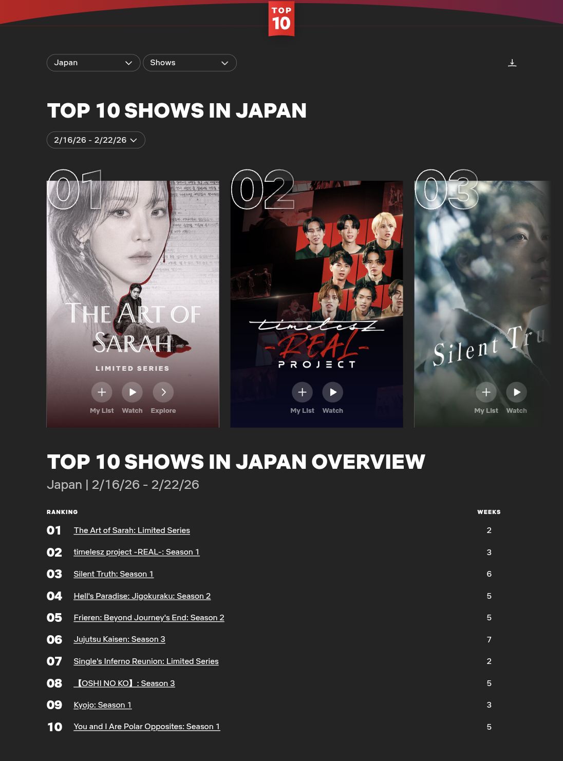 | … | 6826/02/26(木)00:20:32No.1405610430+>ネトフリは日本市場をちゃんと学んだ方がいいよ |