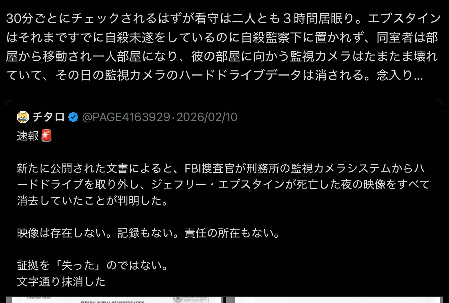 | … | 21926/02/26(木)09:09:54No.1405664499+現状エプスタインファイルのすべてが開示されてるわけでもなし |