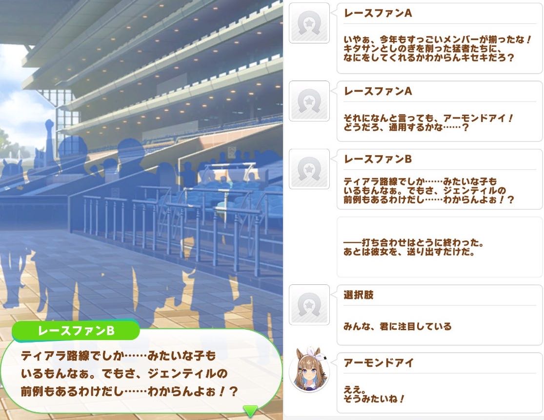 | … | 50826/02/26(木)13:50:57No.1405727893+ジェンティル育成は自分にはない強さを持ってるヴィルシーナから学ぶってところもあるのが好き |