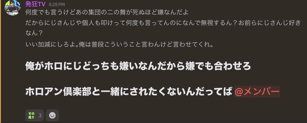 | … | 78626/02/26(木)15:14:42No.1405744698+>>>>>ディスコ流出してからこれからはにじも叩きます!って言い出してからのスレ画だから答え合わせにしかなってない |