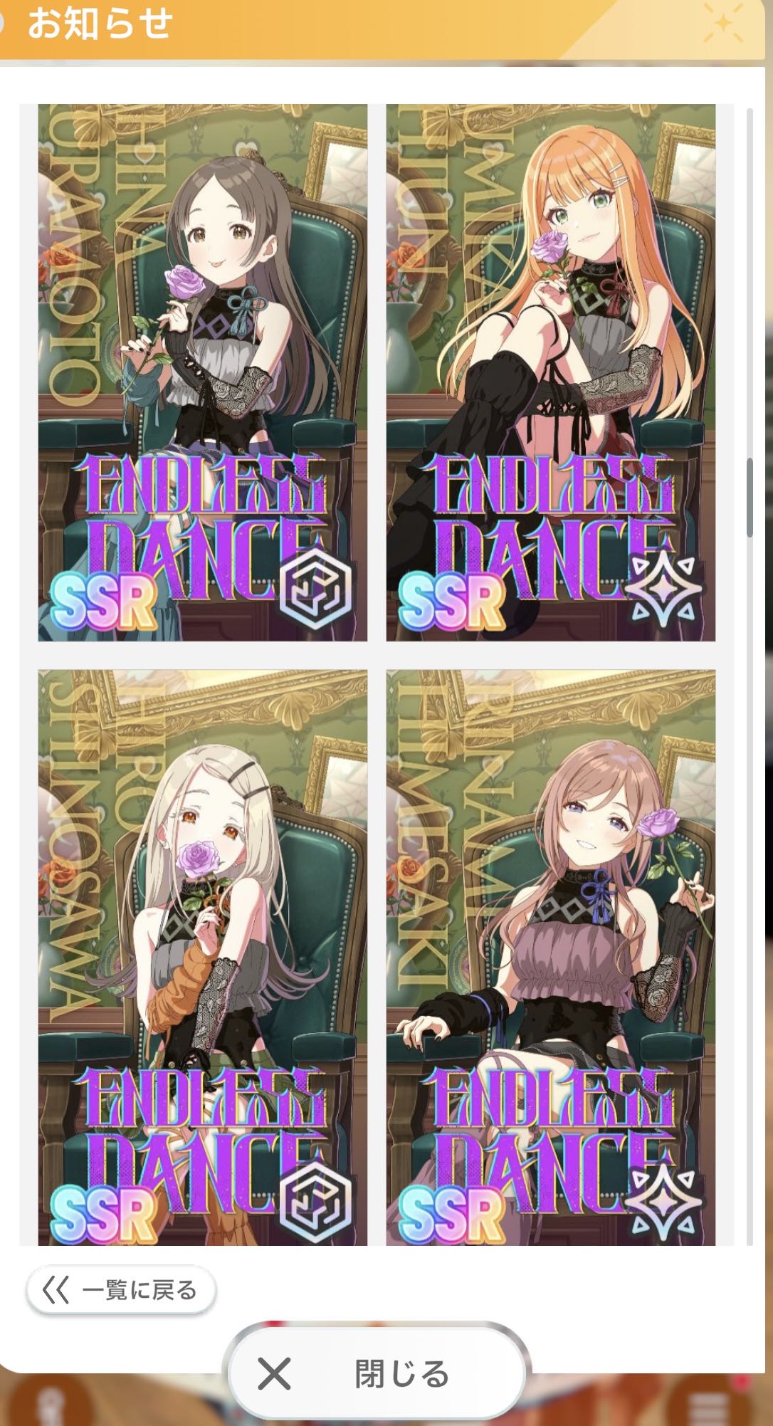 | … | 4726/02/26(木)15:29:04No.1405747857+>咲季お姉さまのアニメイト以外は初期SSR互換ですわ〜 |