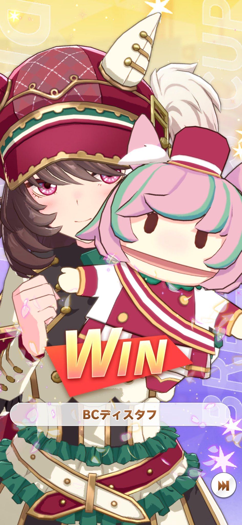 | … | 21426/02/26(木)19:06:15 ID:F774p3XUNo.1405799363+アイちゃんでレジェンズ最終戦まで条件満たした状態だとダークアーモンドアイ(おぱい40%増)と戦えるらしいです |
