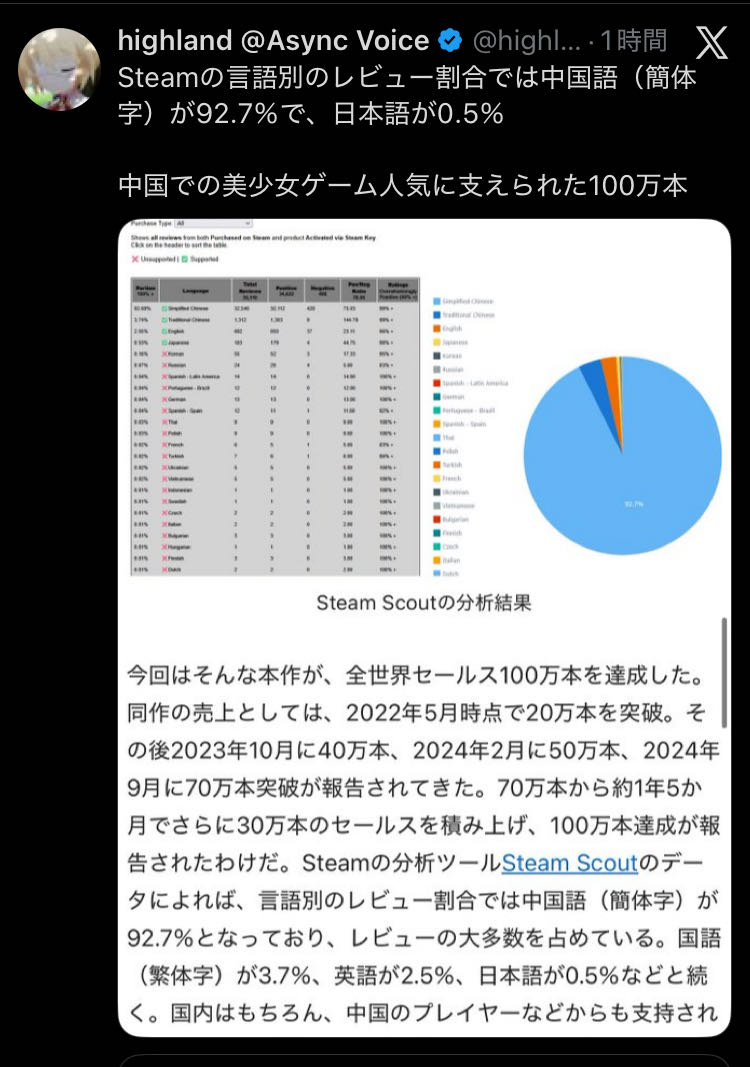 | … | 7726/02/26(木)19:31:00No.1405807216+日本だとエロゲ買うような人はsteamで発売する前に別の場所で買ってるからそりゃ低くなるわな |