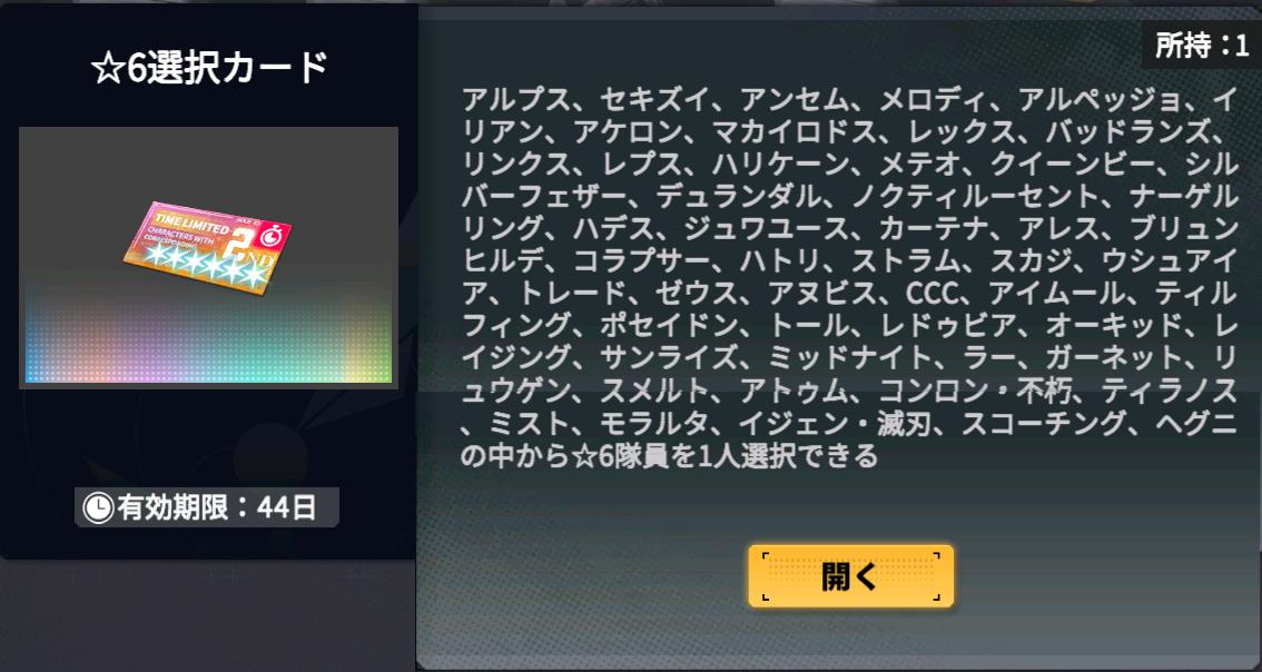 | … | 1226/02/26(木)20:27:25No.1405828089+>難易度高い面やるのにアルプスが本当に強いんだけどもらえる種類少ない選択券でも取れるのが悩ましいコアね |