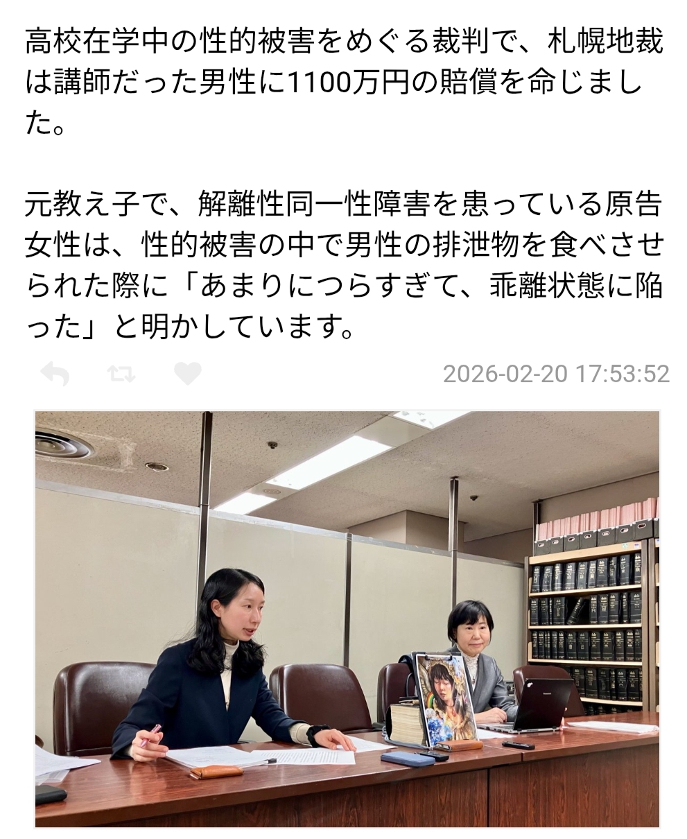 | … | 16426/02/26(木)22:42:21No.1405878444そうだねx2交際を主張してた側が敗訴してるのに何言ってんだ「」 |