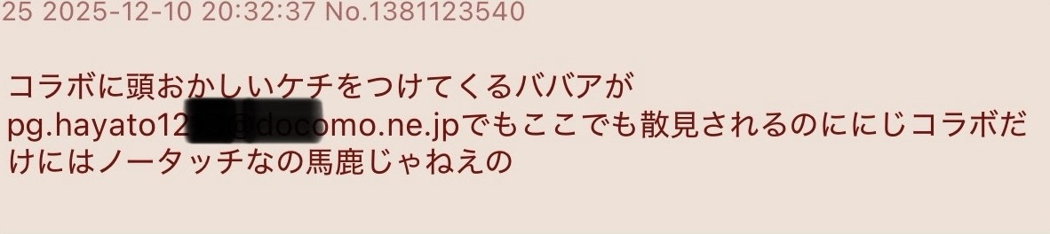| … | 37426/02/26(木)23:06:02No.1405887071+にじさんじと一緒にイベントに出た格ゲーマーかずのこスレを荒らしまくってたハヤト |