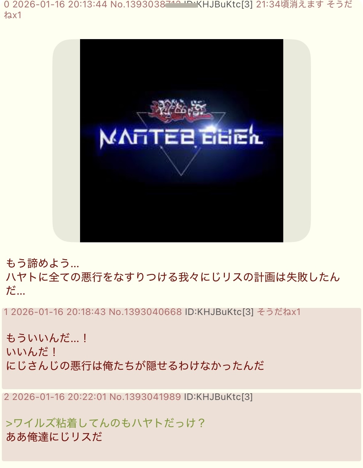 | … | 40226/02/26(木)23:25:33No.1405893503+>「imgの○○スレがにじリスに植民地にされた」 |