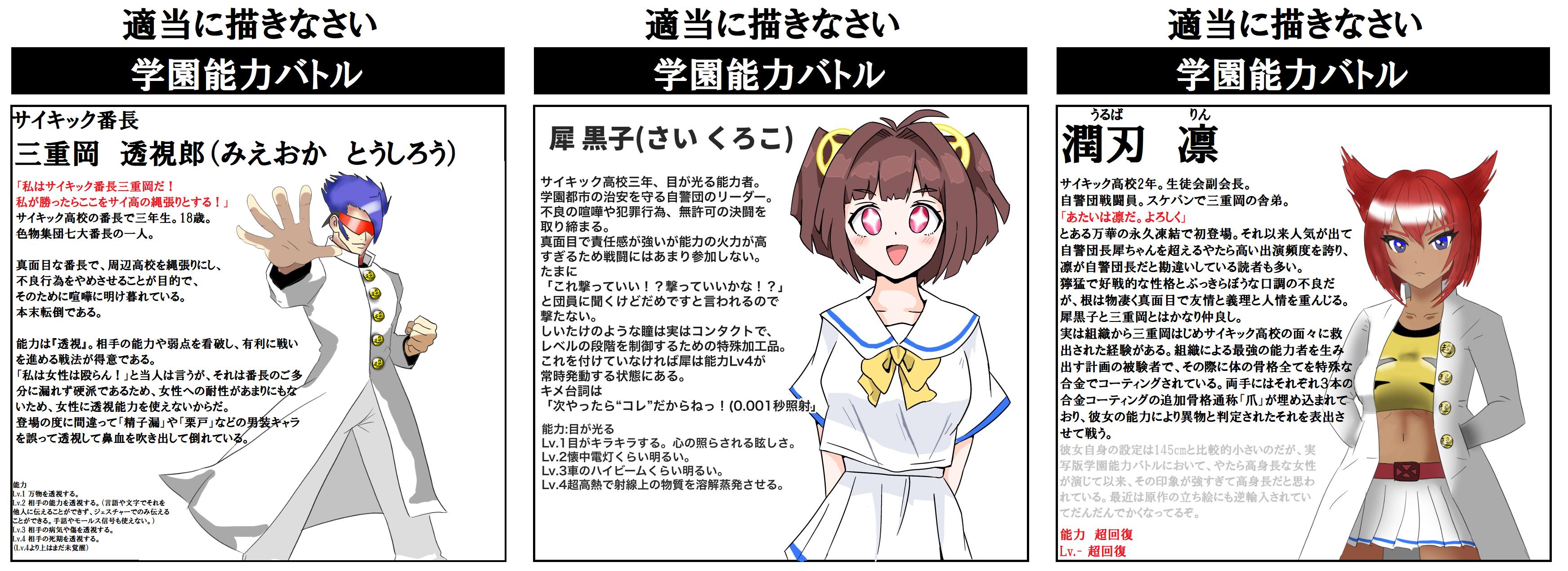 | … | 726/02/26(木)23:13:07No.1405889455+周辺学園の不良行為を止めさせるために戦うサイキック番長と |