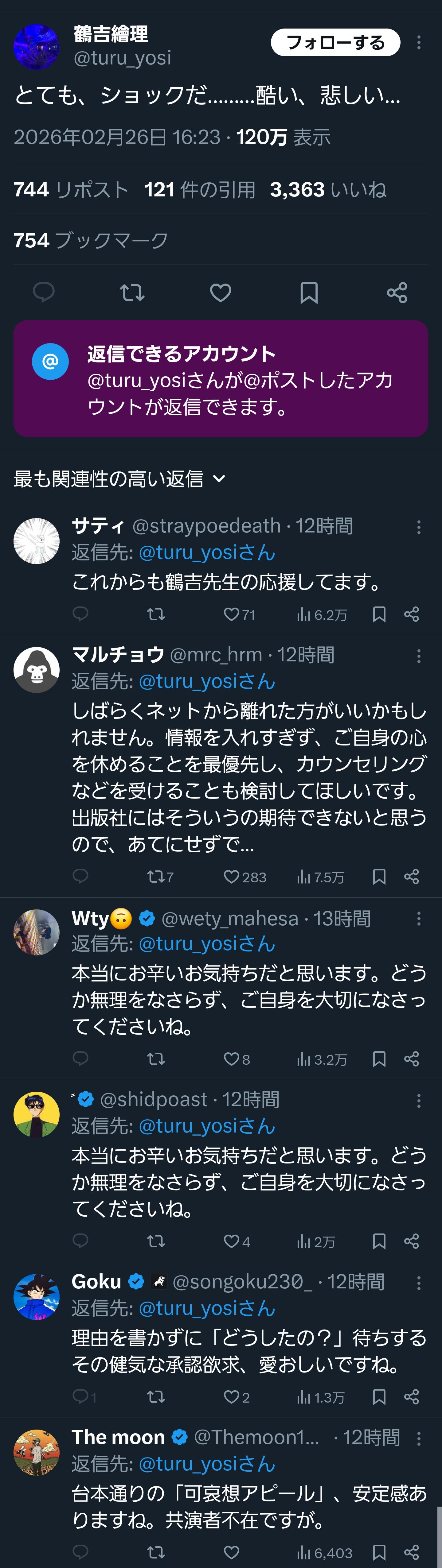 | … | 5826/02/27(金)02:11:48No.1405931287+「」の事はどうでもいいけど小学館がどう始末つけるのか気になる |