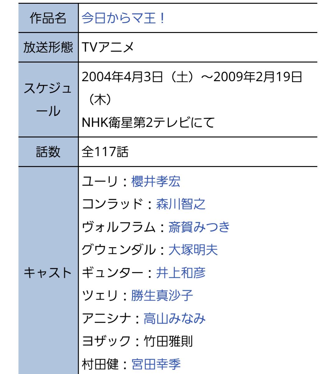 今日からマ王ってアニメを昔NHK教育で放送してたけど