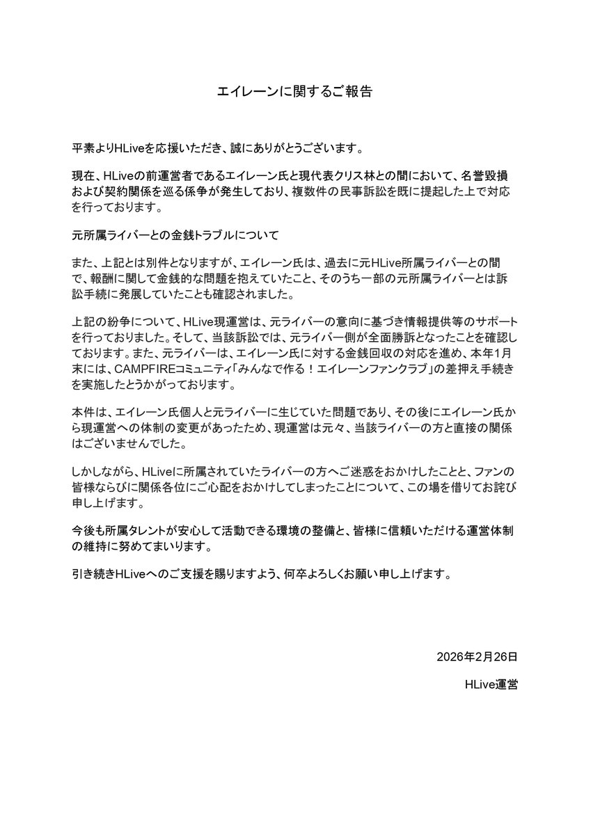 | … | 1026/02/27(金)16:38:55No.1406050516+複数の民事訴訟が進行中 |