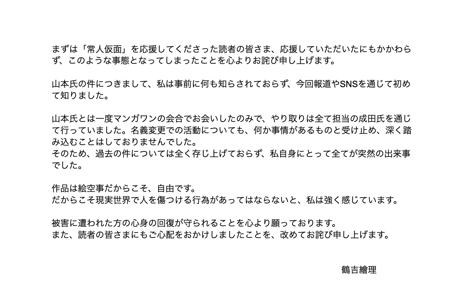 | … | 9126/02/27(金)17:17:24No.1406058170+『常人仮面』配信停止に関するご説明とお詫び |