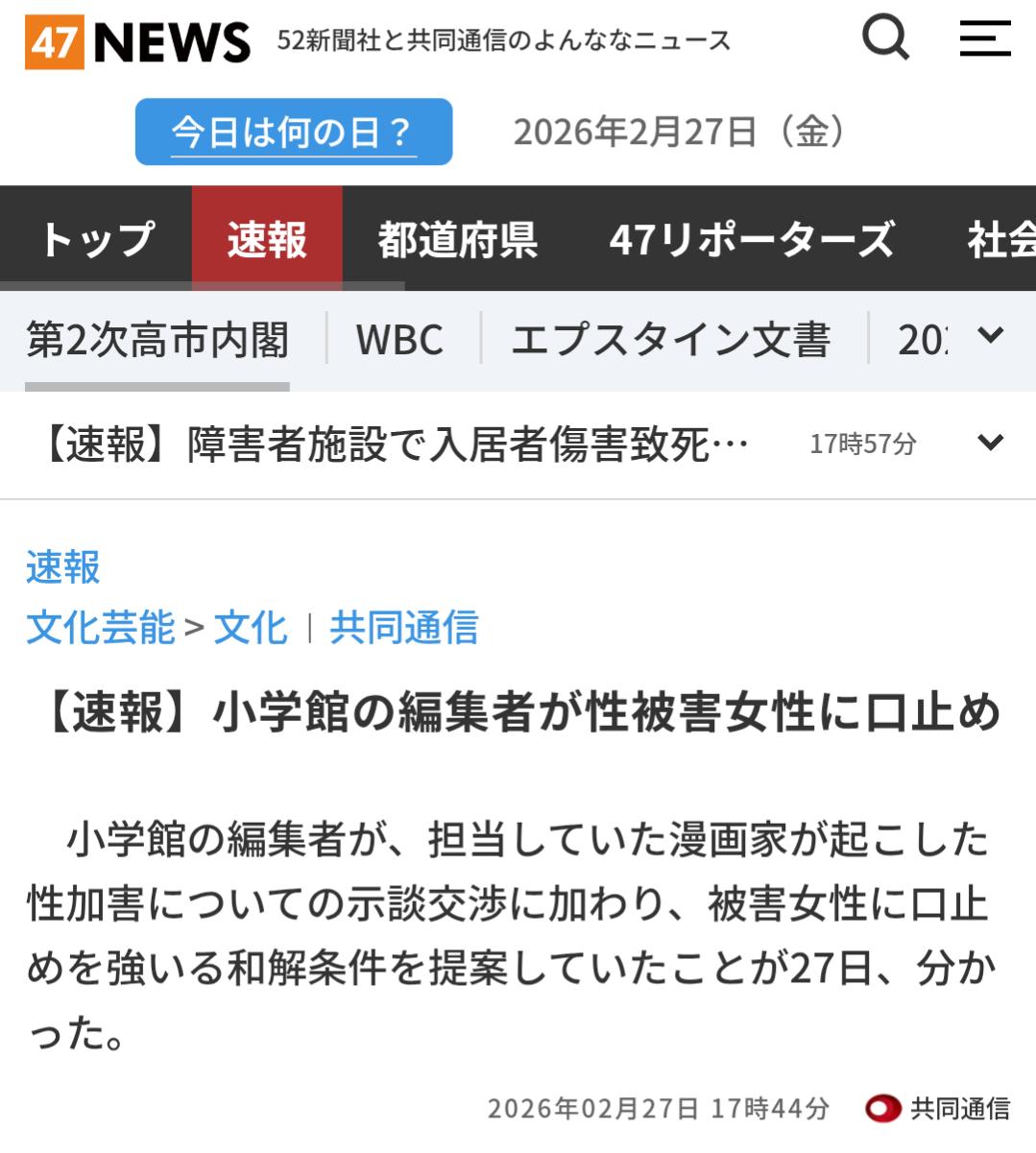 | … | 5226/02/27(金)18:48:49No.1406082908+集英社はスレ画で講談社もなかよし作家が小学生にわいせつとかあったけどすぐに事実発表してた |