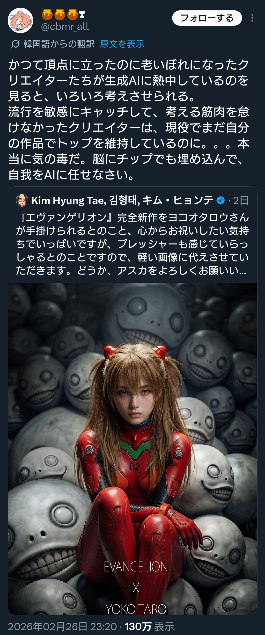 | … | 8126/02/27(金)21:28:44No.1406150118+韓国人は好きなエヴァにヨコオが選ばれたからとか冗談みたいに言ってたけど |