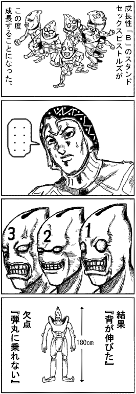 | … | 15126/02/27(金)23:37:35No.1406212667+本体は失神したけどピストルズが伝達やサポートで大活躍してるからなプロシュート戦とチョコラータ戦… |