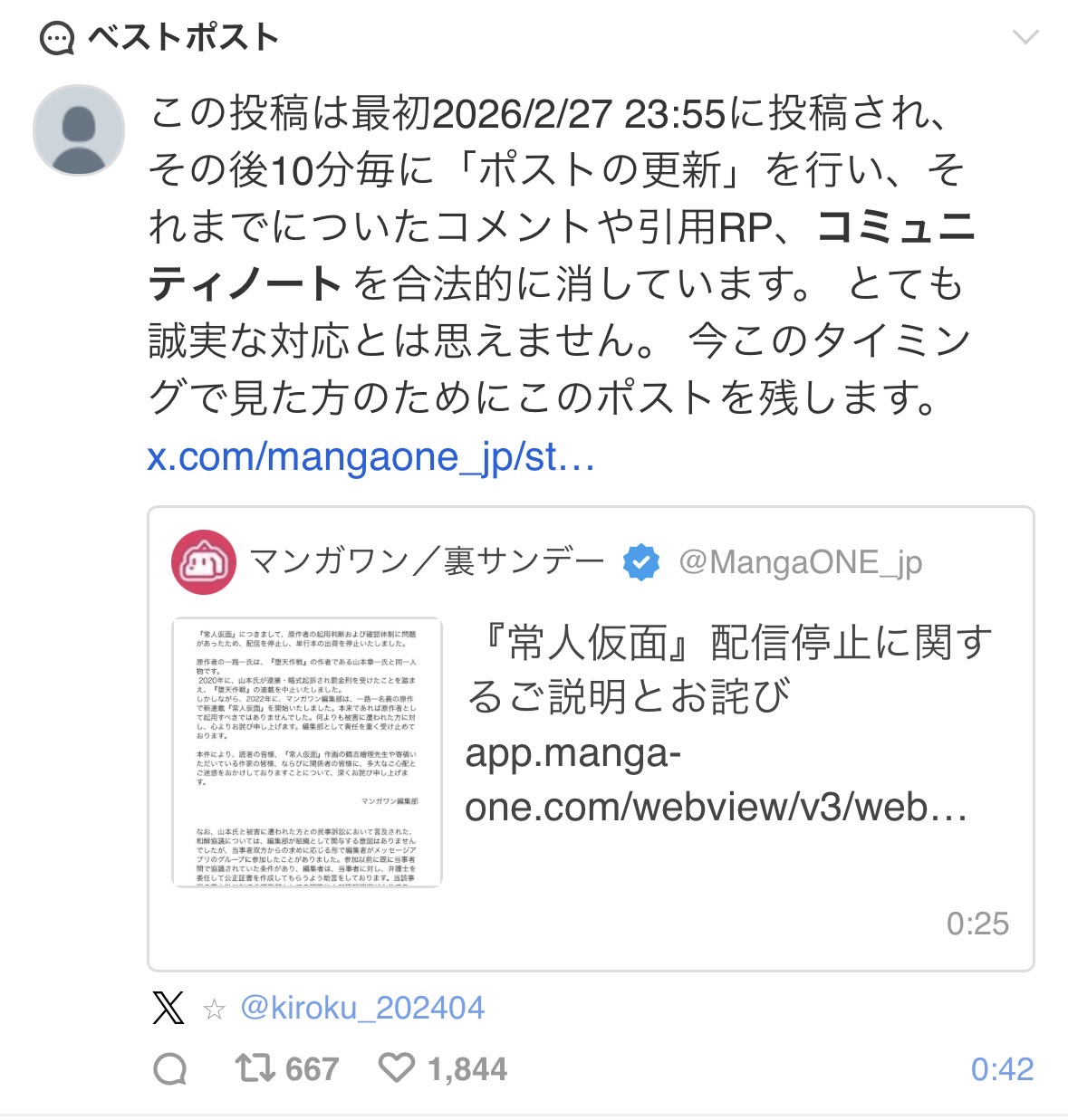 | … | 59826/02/28(土)08:24:19No.1406277072+>https://x.com/kenyusagi/status/2027018620233302301 |