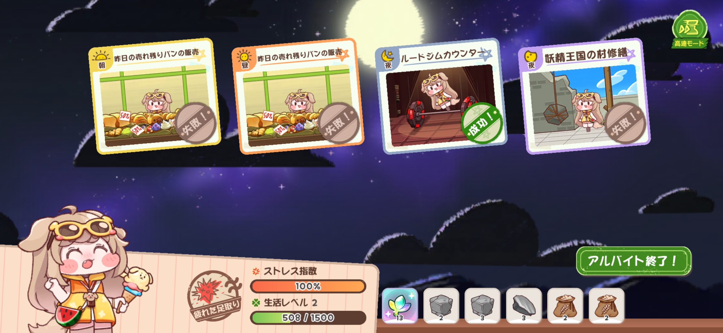 | … | 35526/02/28(土)10:43:57 ID:n.f2px7UNo.1406302125+定期的に休んで毎日出勤するのと数日長時間出勤して家出して出なくなるのどっちが幸せなんだろうにゃん |