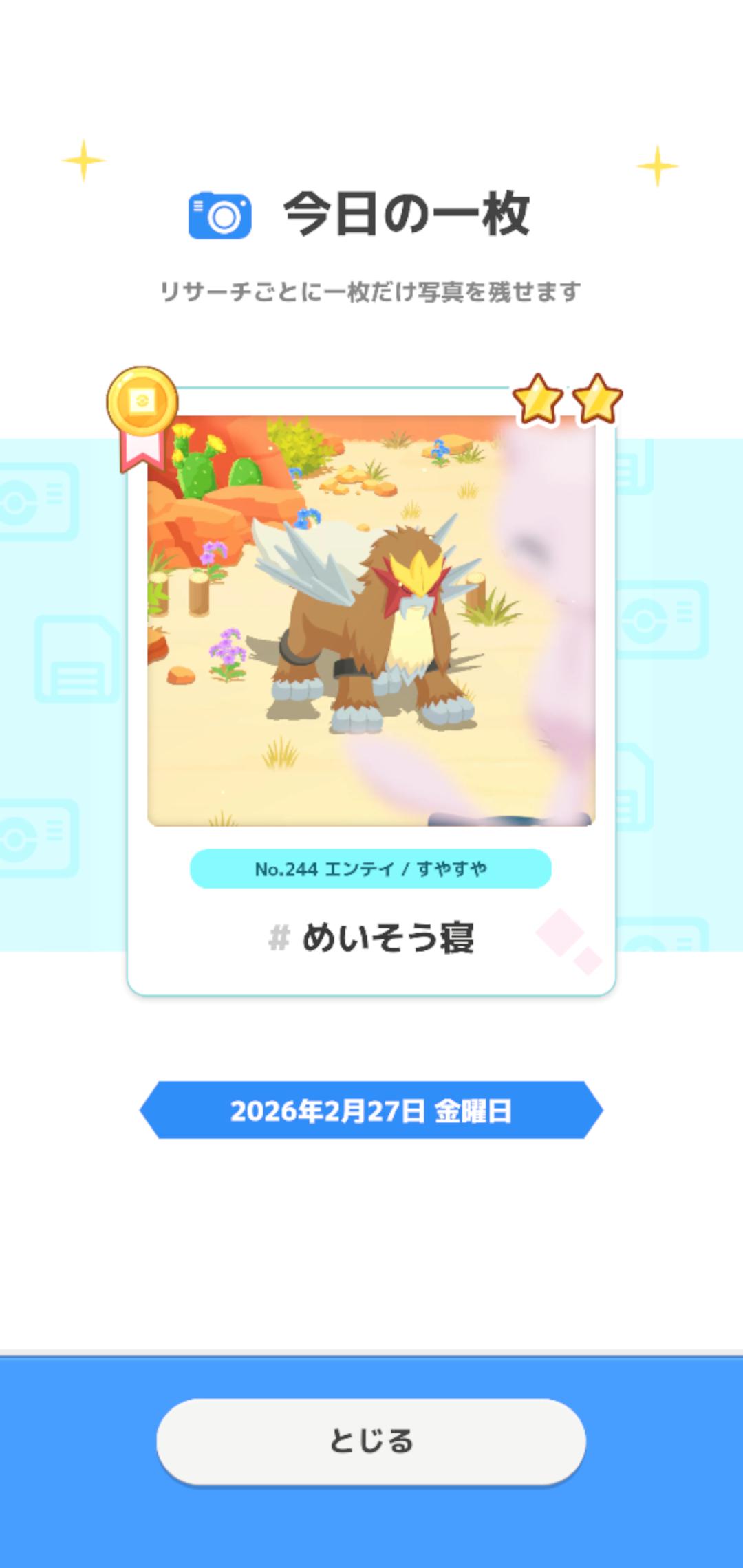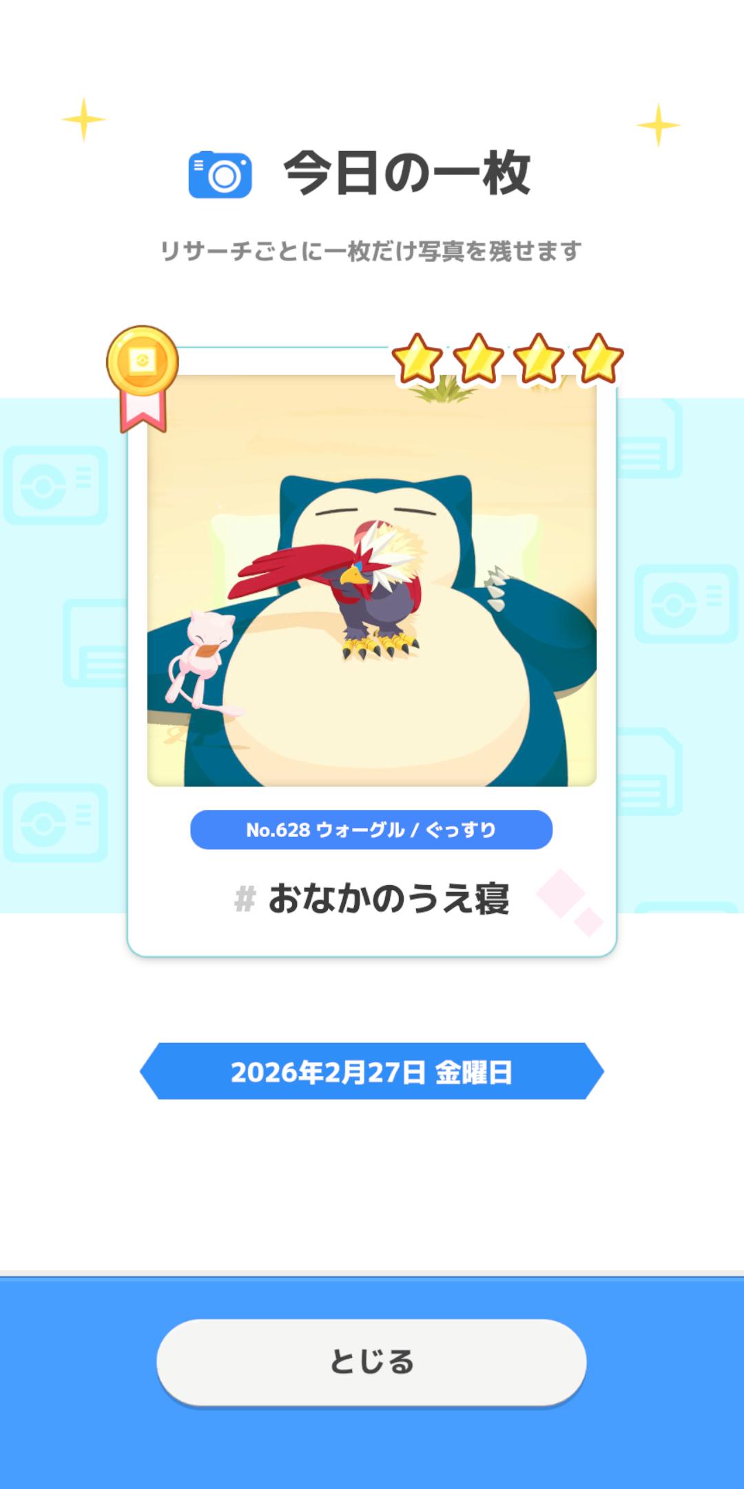 | … | 926/02/28(土)06:58:45No.1406269415+今日は二枚撮れたからこのペースなら余裕でミッション達成できそうゴンね |