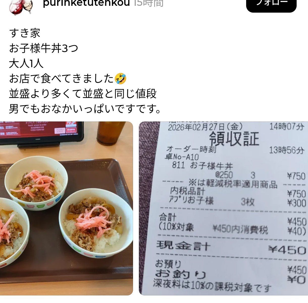 | … | 226/02/28(土)13:09:01No.1406338994そうだねx17吉野家が並290円だった頃は特盛1杯より並2杯の方が |