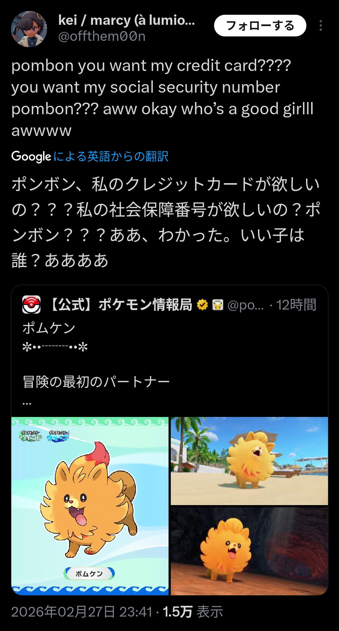 | … | 43526/02/28(土)16:12:44No.1406386093+ライトニングポメラニアンって現実でも馬鹿みたいに可愛いのにポケモンにするのはずるじゃん |