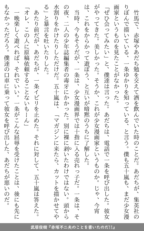 当時の少女漫画界の生けるレジェンドにこれやってるのすごいよね…