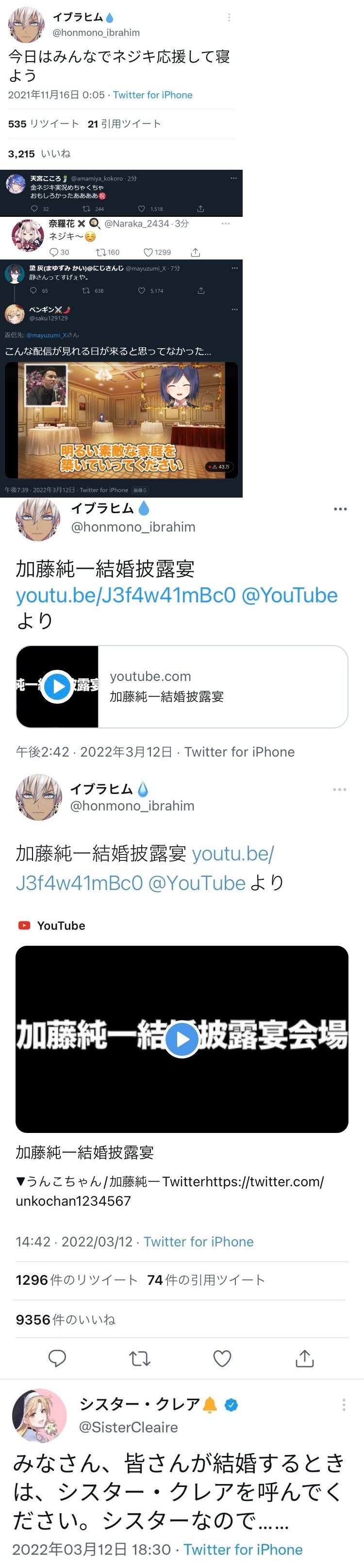 | … | 1626/02/28(土)17:47:45No.1406412271そうだねx8加藤純一とコラボしたライバーや披露宴にまで出たライバーには衛門だ衛門だって言わないのに |