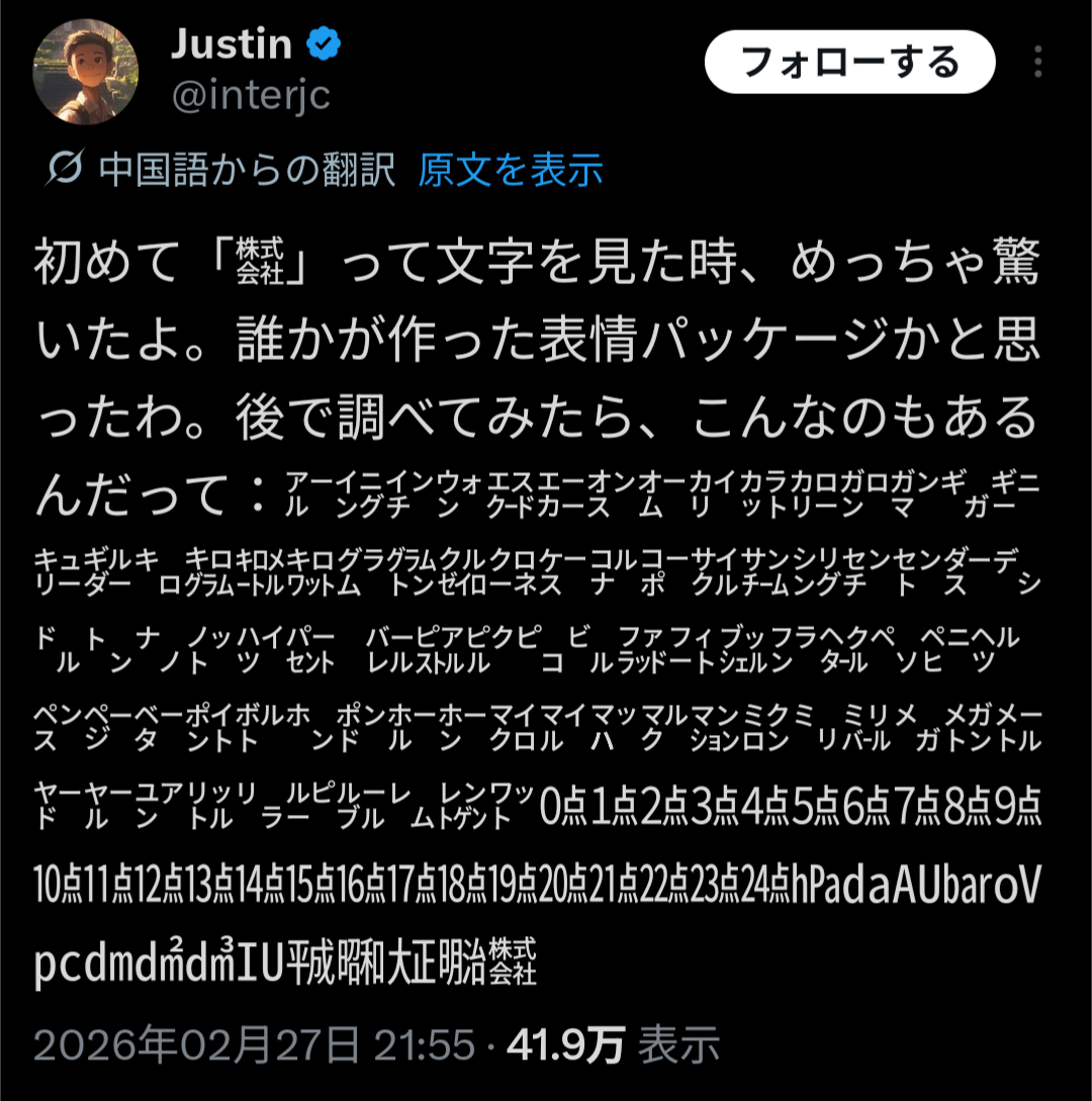 | … | 16026/02/28(土)18:56:46No.1406431303+海外にはこういう組文字は存在しないのかな |