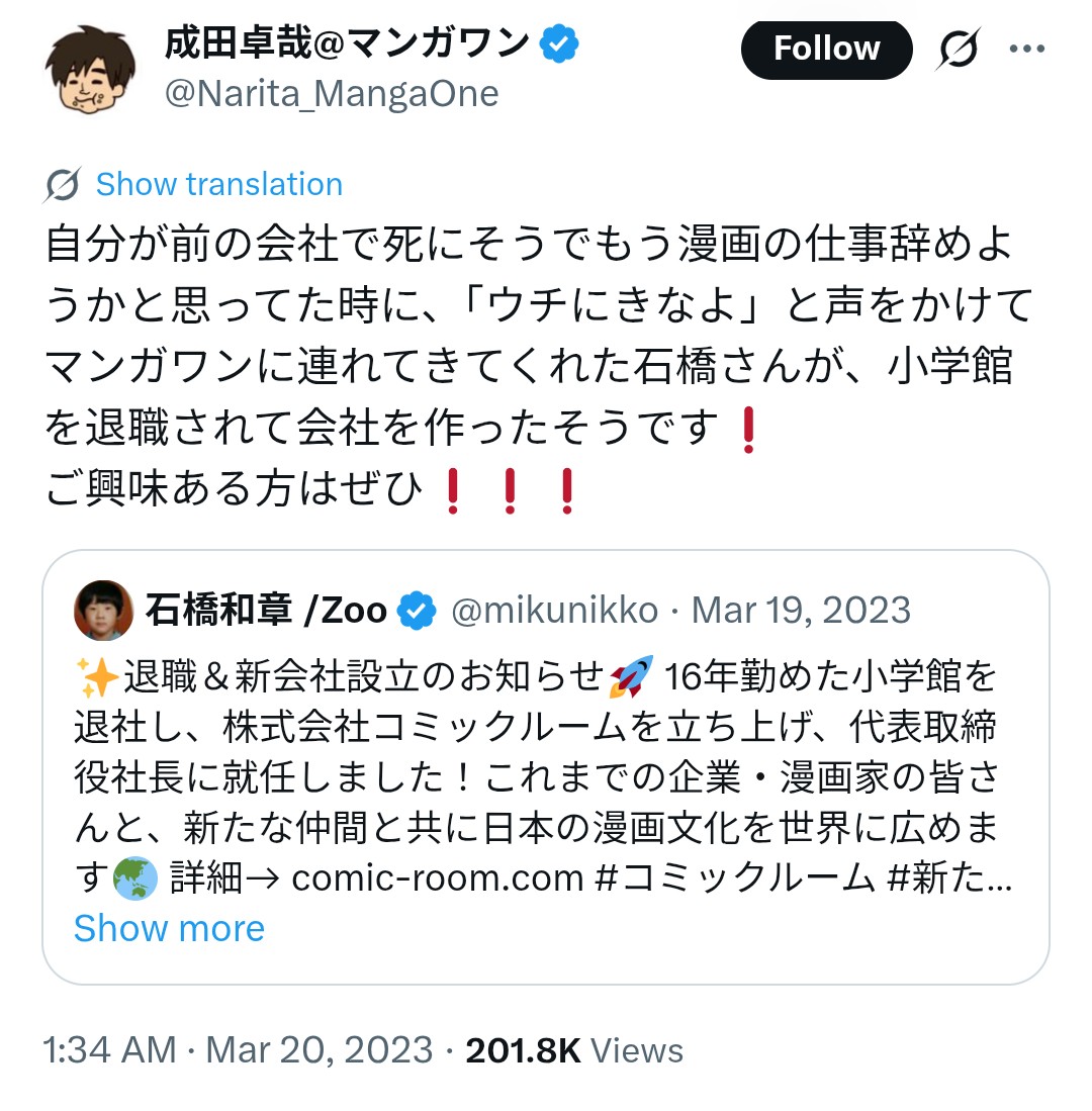 | … | 99626/02/28(土)21:19:45No.1406483829そうだねx1マンガワンの元編集長に何を期待してるんだ? |