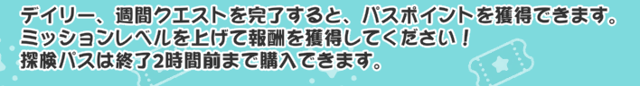 | … | 33726/03/01(日)01:50:33 ID:WH2vyeQ.No.1406573083+>>こんなギリギリに探検パスを買う「」ミーなんているにゃん…? |