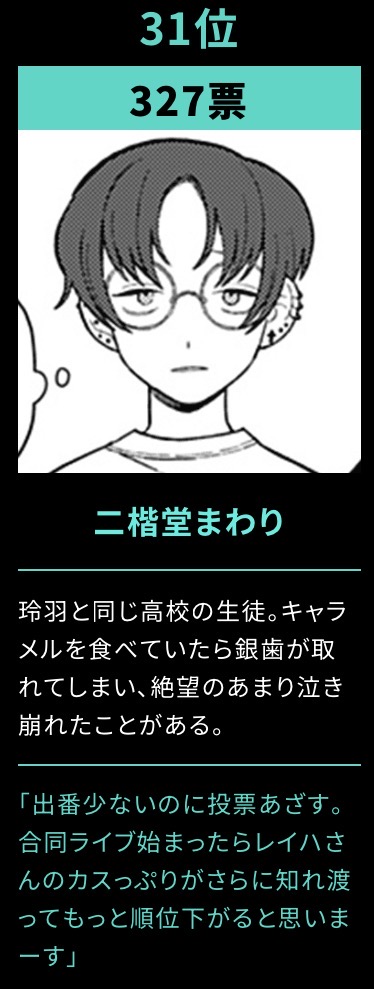 | … | 15626/03/01(日)01:43:10No.1406571511+厘ちゃんと田口くんもまわりちゃんをだいぶ意識してるな |