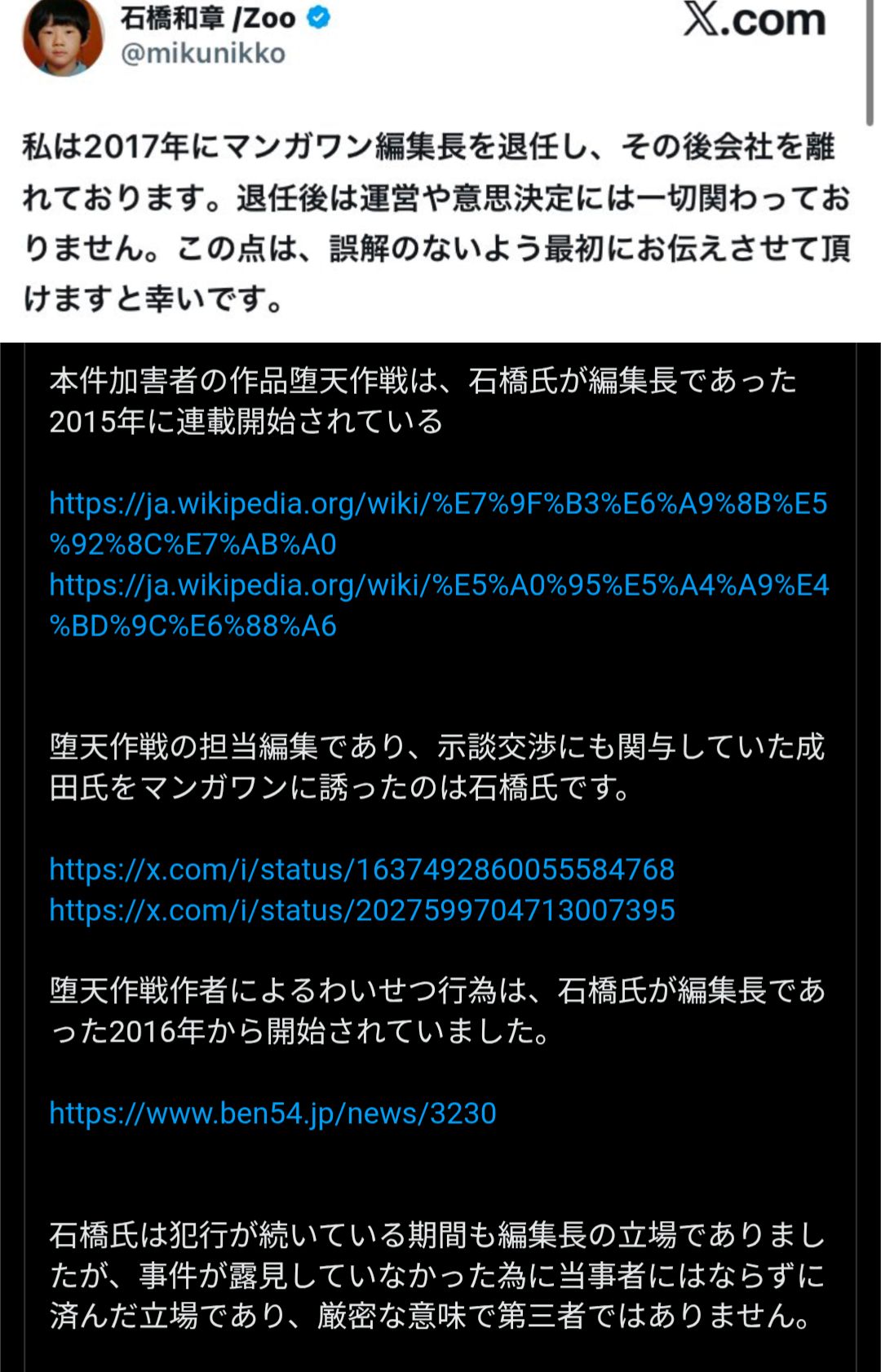 | … | 4026/03/01(日)07:13:20No.1406597262そうだねx3事件時にはまだ編集長だったよ |