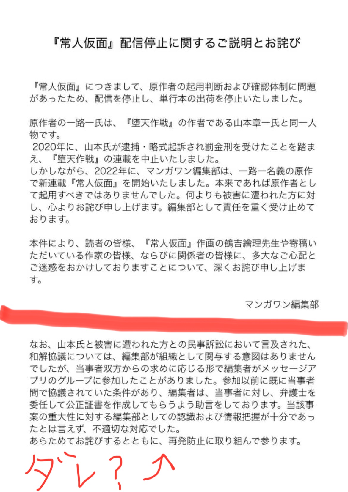 | … | 8426/03/01(日)07:30:55No.1406598329そうだねx2事実確認と内容協議するのに声明発表遅れましたとしても |