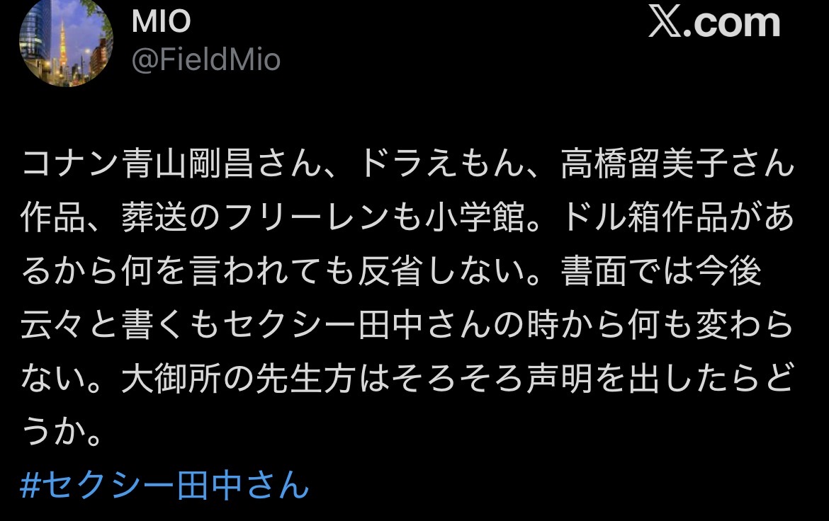 | … | 6226/03/01(日)07:25:11No.1406597942そうだねx1なんかこう小学館自体の体質にも問題あるんじゃないかこれ…? |