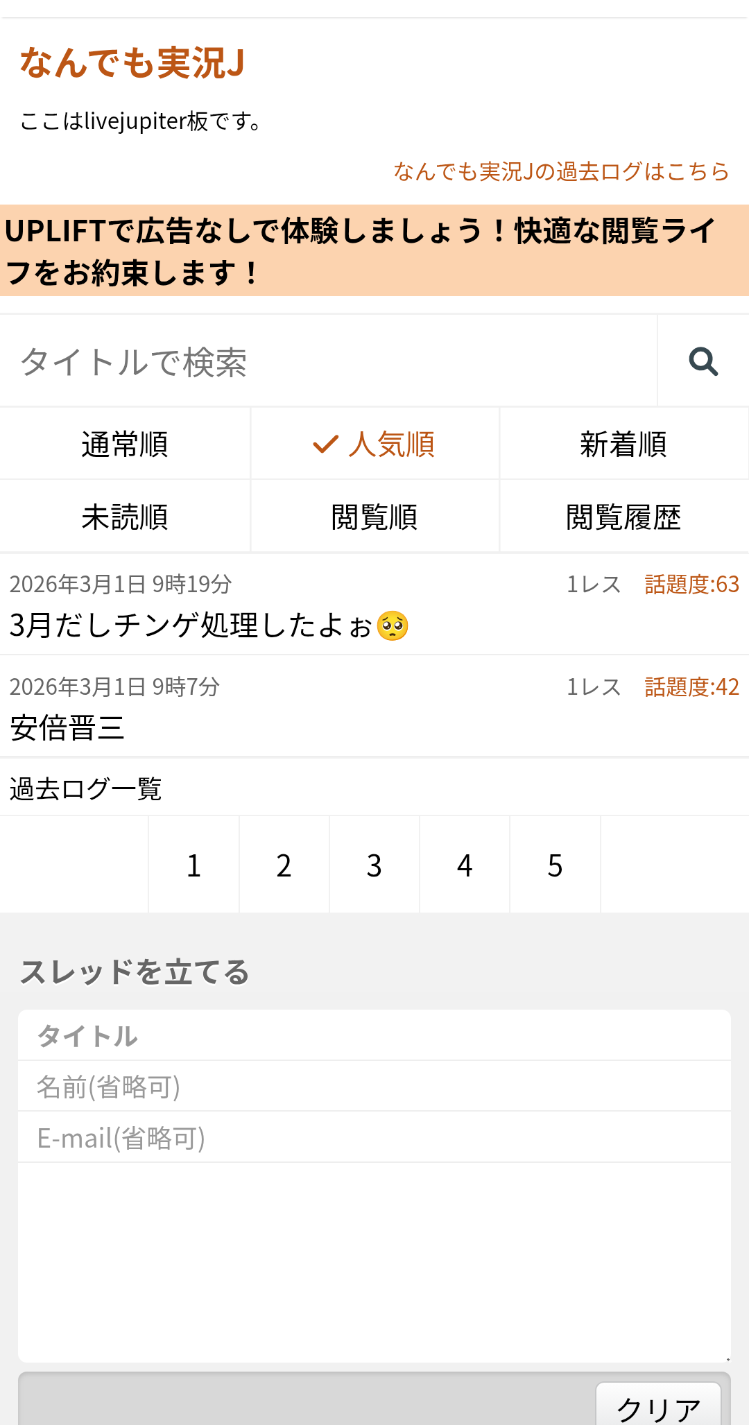 | … | 5426/03/01(日)09:44:12No.1406625066+ちなみに今のなんでも実況ジュピターに立っているスレの数は2 |