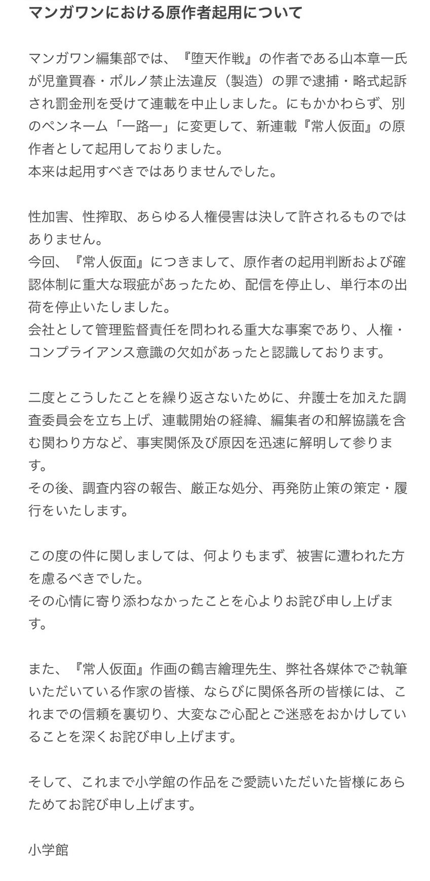 | … | 7526/03/01(日)10:08:37No.1406631456そうだねx2曲がりなりにも出版社に勤めてる人間が舐めた公式声明文出すなよ |