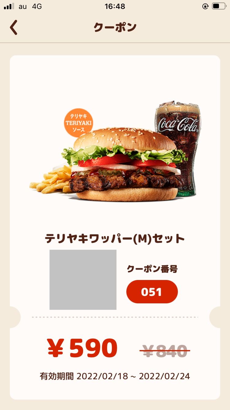 | … | 9626/03/01(日)13:35:01No.1406682141そうだねx1今のクーポンでスパイシーワッパーセットが840円だもんな |