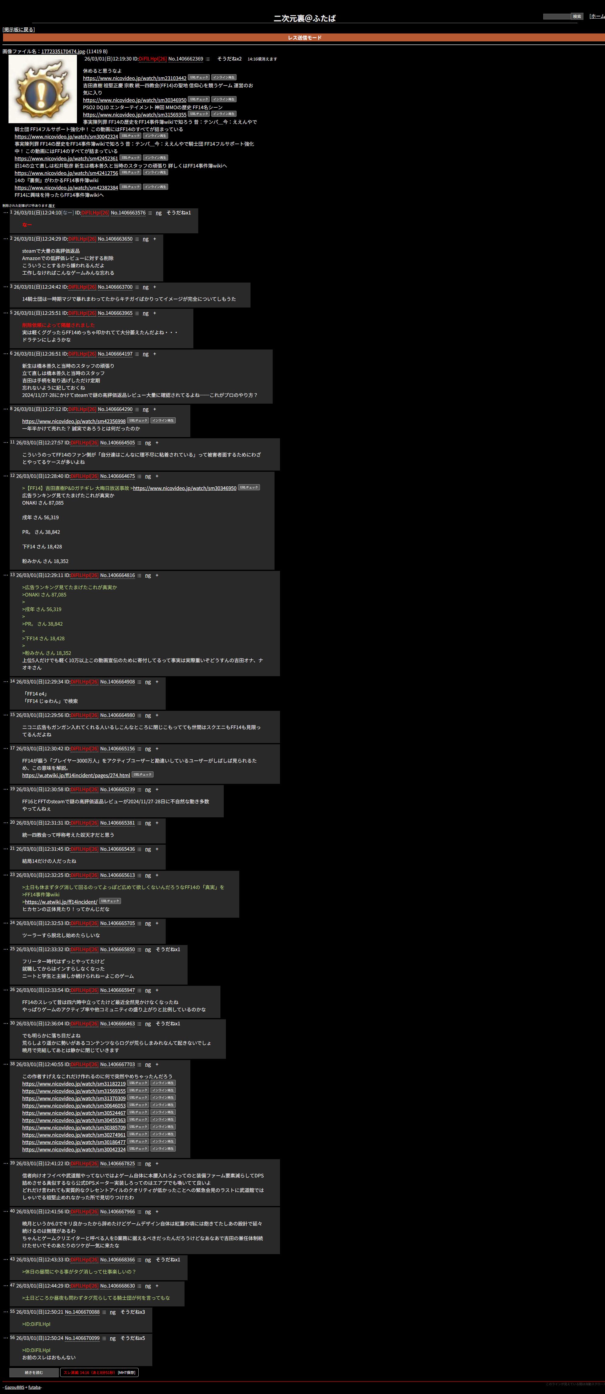 FF14よりスレ虫の方が先に寿命来そう